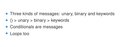 요약하자면 모든 요소들이 전부 객체로 이루어져있기 때문에 Pharo에서는 messege를 주고 받는 방법으로 동작하게 된다.